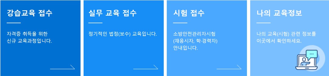 - 개인과 단체를 위한 소방안전교육을 신청할 수 있습니다. 교육 일정, 과정별 교육 내용, 신청 방법 등을 자세하게 설명하고 있습니다.