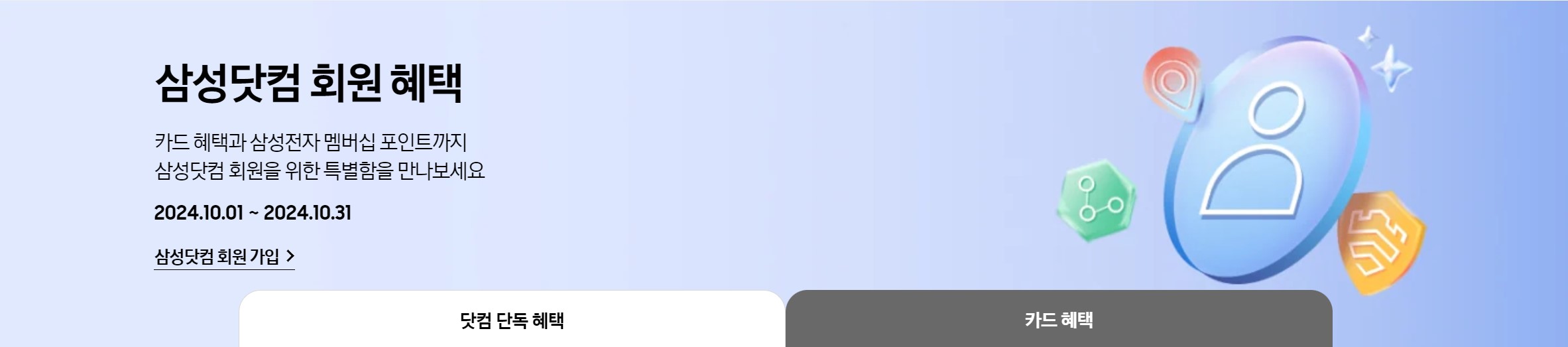 평소 이용하는 카드가 혜택 대상 카드인지 확인하고 부담 없이 구입할 수 있습니다. 아래 삼성 온라인몰 이달의 이벤트 혜택 바로 보기에서 확인할 수 있습니다.↓