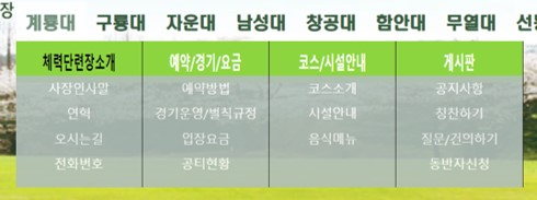 - 코스/시설안내(코스소개, 시설안내, 음식메뉴)