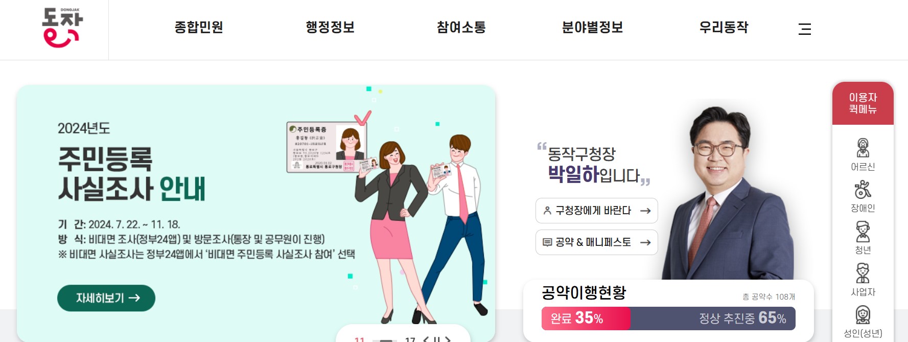동작구청 홈페이지는 원하는 서비스에 쉽고 빠르게 접근할 수 있습니다.