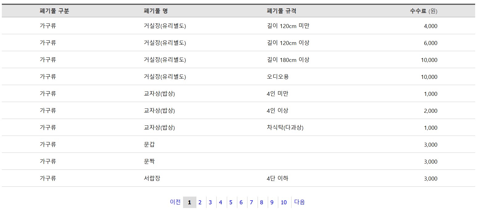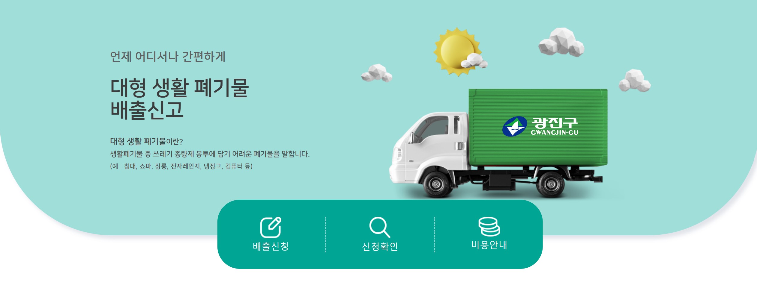 대형폐기물을 배출하는 방법도 확인하고 인터넷신청도 할 수 있습니다.