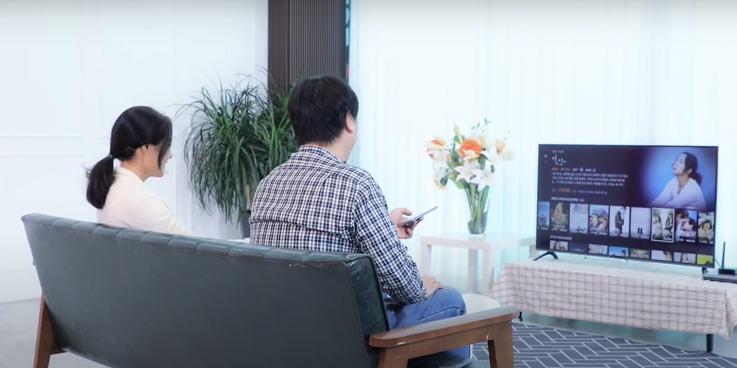 스마트 리모컨을 이용하여 스마트폰을 통해 tv를 이용할 수 있어,