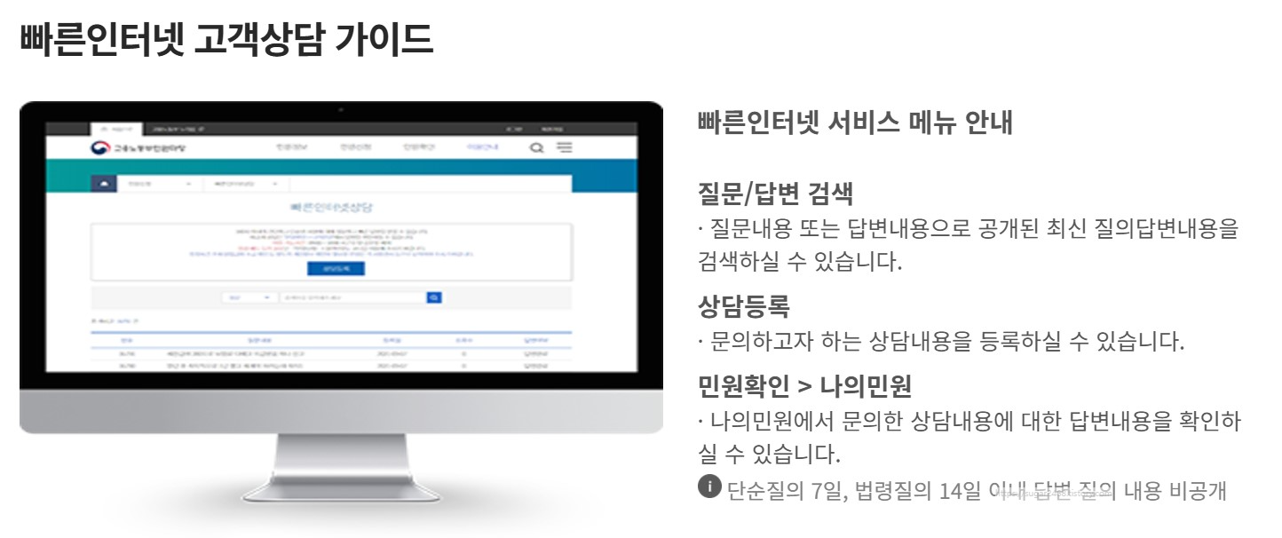 모바일 상담신청 외에도 빠른 인터넷 고객상담 서비스도 있습니다.