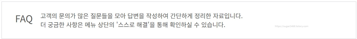 스스로해결에서 해결되지 않았거나, 추가 문의가 있는 경우 faq를 이용하면 빠르고 쉽게 문제 해결을 할 수 있습니다. 단어로 문의사항을 검색하면 기존 등록된 질문과 답변을 즉시 확인할 수 있습니다.