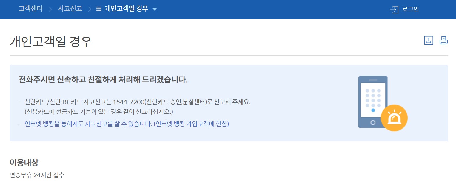 신한은행 카드를 이용하다가 분실을 했을 경우...