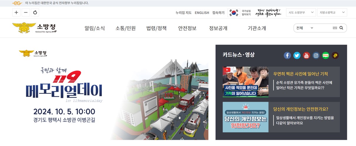 소방청 홈페이지를 방문하면 다음과 같은 정보를 확인할 수 있습니다.