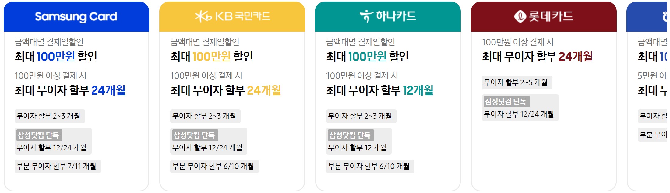 - 특가 이벤트 및 할인 혜택 (카드 혜택, 캐시백 적립 등)